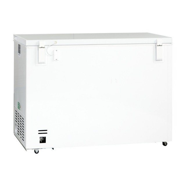 Utsiden av fryseren er hvit og har integrert håndtak på siden og foran for enkel åpning. Når fryseren er lukket, gir den også en ekstra arbeidsflate takket være det slitesterke vippelokket. Med LED-belysningen på innsiden, kan du enkelt se alt i fryseren.