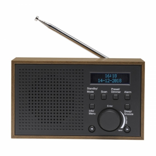 Den brukervennlige Denver DAB-46-radioen har en tidløs design. LCD-skjermen viser tid og dato. Du trenger ikke å justere tiden selv, da Denver DAB-46 stiller klokken automatisk via DAB. Radioen går også på batterier (4xAA) slik at du kan ta den med deg ut. Alarmfunksjonen vekker deg med en melodi eller en valgt radiokanal.