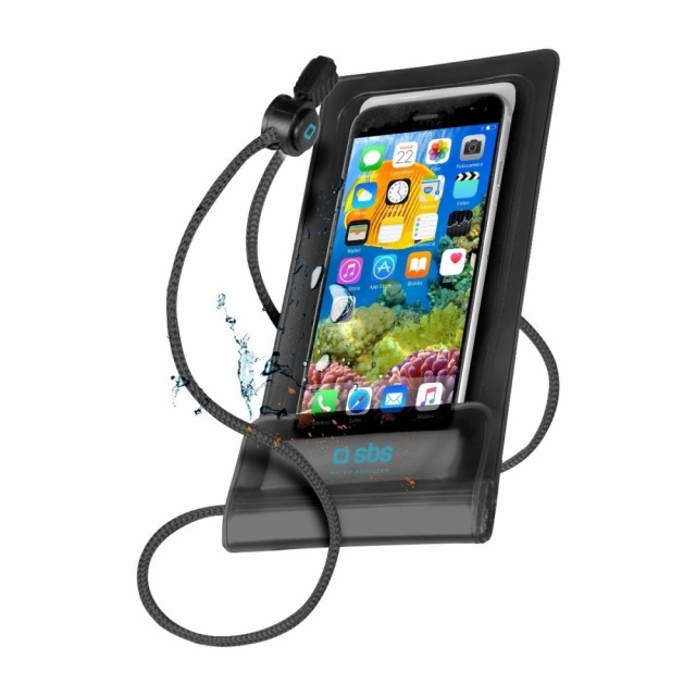 Vanntett oppbevaringsveske med pålitelig dobbel lukkemekanisme for smarttelefon. Vesken passer til smarttelefoner på 6,7" (158 x 78 mm). Transport er enkelt takket være den medfølgende nakkesnoren. Du trenger ikke å ta opp telefonen fra vesken for å bruke skjermen takket være den gjennomsiktige berøringsfilmen. Du kan også slå på kameraet på telefonen og ta bilder gjennom den gjennomsiktige vesken.