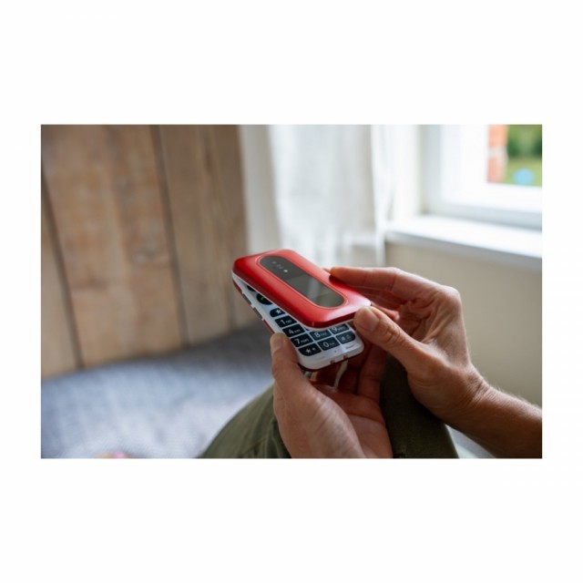 De store knappene er plassert med god avstand, noe som gjør dem lettere å finne. Den lettleste skjermen på 2,8" gjør det enkelt å navigere i funksjoner og lese tekstmeldinger. Telefonen er kompatibel med høreapparater, slik at du kan ringe direkte gjennom høreapparatet.