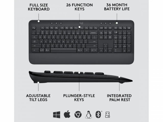 Logitech Signature MK650 Combo for Business (graphite) Bluetooth, USB, 4000 PPI, 6 programmerbare knapper, gummigrep, SilentTouch PrisNOK999,00 inkl. mva. På lager Kjøp Del dette Produktinfo Produktanmeldelser (0) Generelt Modell MK650 Combo for Business Produktserie Logitech Signature Garanti (måneder) 24 EAN 5099206105300 Inn-enhet Tastaturteknologi Stempel Numerisk tastatur Ja Produktype Tastatur- og mussett Håndleddstøtte Ja Trådløs mottaker Logitech Logi Bolt USB-mottaker Maks driftsavstand 10 m Grensesnitt Bluetooth LE Tastaturopplegg QWERTY Justerbar høyde Ja Tastaturlokalisering Nordisk (dansk/finsk/norsk/svensk) Antall knapper 6 Overføringsteknologi Trådløs Tastaturbetegnelse Logitech Signature K650 for Business Tast/knapp-funksjon Språkbytte, Kalkulator, Tab, Emoji, Mikrofon dempet, Bilde, Tilbakefunksjon, Oppdater, Klippeskjerm, Diktat Inngangsenhet (2.) Type Mus Antall tommelknapper 2 Støttet batteritype AA x 1 Antall knapper 5 Antall batterier inkludert 1 Bevegelse oppløsning 4000 dpi Inngangsenhetsbetegnelse Logitech Signature M650 for Business Tilkoblingsteknologi Trådløs Ytelse 400 - 4000 dpi sanntidssensitivitet Batteri Installert antall 2 Produktformfaktor AA-type Påkrevd antall 2 Levetid (inntil) 36 måneder Diverse MTBF 150,000 timer Nøkkellevetid 5 millioner klikk Farge Grafitt Virker med Chromebook Ja Produktmateriale Plastikk Fargekategori Svart Tilpassede standarder FSC, CarbonNeutral, Works With Chromebook (WWCB)-sertifisert Størrelser og vekt (forsendelse) Fraktbredde 52.7 cm Fraktdybde 20.3 cm Fraktvekt 1.238 kg Frakthøyde 4.65 cm Miljøparametere Min. driftstemperatur 0 °C Maks. Driftstemperatur 40 °C Systemkrav OS påkrevd Apple iOS 14 eller nyere, Google Chrome OS, Linux, Android 8.0 (Oreo) eller nyere, Windows 10 / 11 eller nyere, Apple MacOS X 10.10 eller nyere, Apple iPadOS 14 eller nyere Størrelses- og vektdetaljer Dimensjoner (BxDxH) / Vekt Trådløs mottaker: 1.44 cm x 0.61 cm x 1.87 cm / 1.7 g, Tastatur: 45.73 cm x 19.35 cm x 2.4 cm / 700.23 g, Mus: 6.1 cm x 10.82 cm x 3.88 cm / 101.4 g Skriv en produktanmeldelse og del dine erfaringer med dette produktet med andre kunder. Email Navn Din vurdering? 1 star 2 star 3 star 4 star 5 star 6 star Oppgi en tittel for anmeldelsen din Skriv inn produktanmeldelsen i feltet under