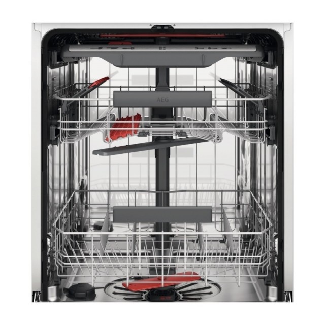 Den romslige oppvaskmaskinen har plass til opptil 14 kuverter. Takket være høydejusterbar overkurv er det enkelt å laste inn og ut av oppvaskmaskinen. Kurven kan justeres selv når den er full av oppvask. Den inkluderer også holdere for glass slik at de står stødig og ikke blir skadet under vask. Over overkurven finnes også en MaxiFlex bestikkskuff.