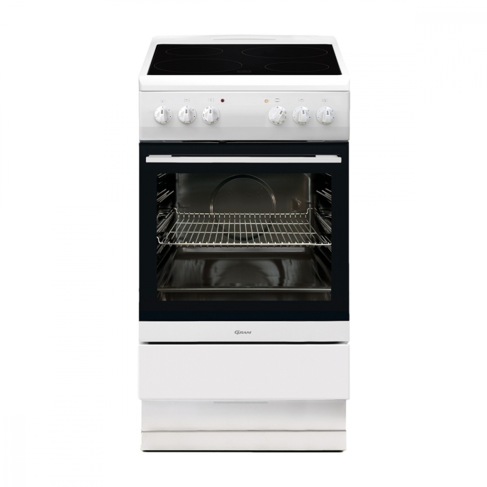 Gram KE 3205-60 N er en 50 cm bred komfyr med keramisk kokeoverflate. Gode grunnleggende funksjoner og et brukervennlig design gjør den behagelig å bruke! Ovnen leveres med to stekebrett, en stekepanne og en grillrist.