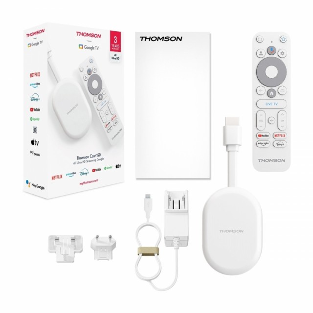 Forvandle enhver TV til et smart underholdningssenter med Thomson 150 Cast strømmedongle. Denne kompakte enheten gir deg den fullstendige Google TV-opplevelsen på alle TV-er med HDMI-port, noe som gjør den perfekt for strømming av favorittinnholdet ditt hjemme eller på farten.