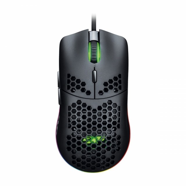 EXE Rifter Ultralight RGB Gamingmus er en ultralett gamingmus med et ergonomisk bikubemønstret design. Gamingmusen er utstyrt med tilpassbar RGB-belysning, programmerbare knapper og en sensor av spillkvalitet.