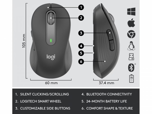 Logitech Signature MK650 Combo for Business (graphite) Bluetooth, USB, 4000 PPI, 6 programmerbare knapper, gummigrep, SilentTouch PrisNOK999,00 inkl. mva. På lager Kjøp Del dette Produktinfo Produktanmeldelser (0) Generelt Modell MK650 Combo for Business Produktserie Logitech Signature Garanti (måneder) 24 EAN 5099206105300 Inn-enhet Tastaturteknologi Stempel Numerisk tastatur Ja Produktype Tastatur- og mussett Håndleddstøtte Ja Trådløs mottaker Logitech Logi Bolt USB-mottaker Maks driftsavstand 10 m Grensesnitt Bluetooth LE Tastaturopplegg QWERTY Justerbar høyde Ja Tastaturlokalisering Nordisk (dansk/finsk/norsk/svensk) Antall knapper 6 Overføringsteknologi Trådløs Tastaturbetegnelse Logitech Signature K650 for Business Tast/knapp-funksjon Språkbytte, Kalkulator, Tab, Emoji, Mikrofon dempet, Bilde, Tilbakefunksjon, Oppdater, Klippeskjerm, Diktat Inngangsenhet (2.) Type Mus Antall tommelknapper 2 Støttet batteritype AA x 1 Antall knapper 5 Antall batterier inkludert 1 Bevegelse oppløsning 4000 dpi Inngangsenhetsbetegnelse Logitech Signature M650 for Business Tilkoblingsteknologi Trådløs Ytelse 400 - 4000 dpi sanntidssensitivitet Batteri Installert antall 2 Produktformfaktor AA-type Påkrevd antall 2 Levetid (inntil) 36 måneder Diverse MTBF 150,000 timer Nøkkellevetid 5 millioner klikk Farge Grafitt Virker med Chromebook Ja Produktmateriale Plastikk Fargekategori Svart Tilpassede standarder FSC, CarbonNeutral, Works With Chromebook (WWCB)-sertifisert Størrelser og vekt (forsendelse) Fraktbredde 52.7 cm Fraktdybde 20.3 cm Fraktvekt 1.238 kg Frakthøyde 4.65 cm Miljøparametere Min. driftstemperatur 0 °C Maks. Driftstemperatur 40 °C Systemkrav OS påkrevd Apple iOS 14 eller nyere, Google Chrome OS, Linux, Android 8.0 (Oreo) eller nyere, Windows 10 / 11 eller nyere, Apple MacOS X 10.10 eller nyere, Apple iPadOS 14 eller nyere Størrelses- og vektdetaljer Dimensjoner (BxDxH) / Vekt Trådløs mottaker: 1.44 cm x 0.61 cm x 1.87 cm / 1.7 g, Tastatur: 45.73 cm x 19.35 cm x 2.4 cm / 700.23 g, Mus: 6.1 cm x 10.82 cm x 3.88 cm / 101.4 g Skriv en produktanmeldelse og del dine erfaringer med dette produktet med andre kunder. Email Navn Din vurdering? 1 star 2 star 3 star 4 star 5 star 6 star Oppgi en tittel for anmeldelsen din Skriv inn produktanmeldelsen i feltet under